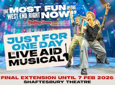 by Bob on 13/09/2025Rating: 5 out of 512th September 2025. Great production from start to finish. Acting good throughout the show plus fantastic singers too with a great backing band on stage. My pick of the night was the actress who played Margaret Thatcher & was funny at times with her expressions plus some funny quips. The rest of the cast surpassed themselves too & the production put together with the songs blending in with the storyline. There were also a few poignant moments when individuals were putting over the Ethiopian hunger & people dying because of the lack of food. Also the problems getting food, medicines etc into Ethiopia. All In all a show that we enjoyed in both aspects of the storyline with the sadness of the situation, then the story of making the record & Live Aid being put together. Well done everyone involved from cast to directors. Bob McPherson.