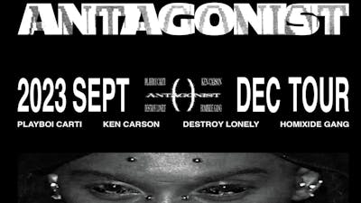 After fans in London spotted billboards mysteriously advertising Antagonist with the rapper's name alongside fellow Opium labelmates Ken Carson, Destroy Lonely and Homixide Gange, in July 2023 Playboi Carti confirmed that the tour will visit the Manchester AO Arena on 21 November and The O2 London on 22 November.
